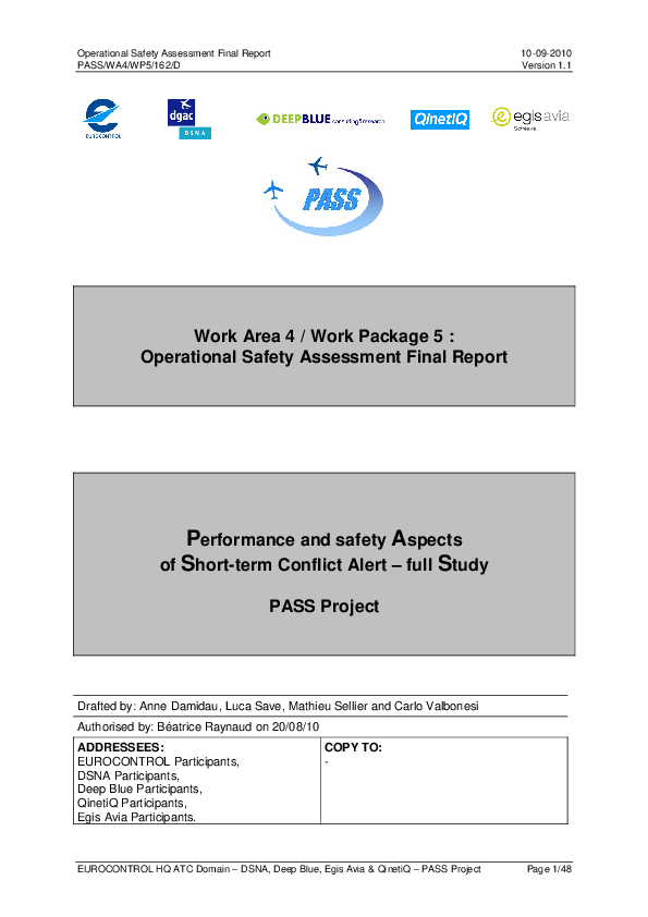 This safety assessment is focusing on the potential negative effects of STCA with TCAS. On the other hand, the mitigation by airborne safety nets of STCA-related hazards effects is not to be accounted for.The identified hazards are then used to derive safety objectives, as a first step for the identification of Safety Requirements and Recommendations in PASS Phase 3.