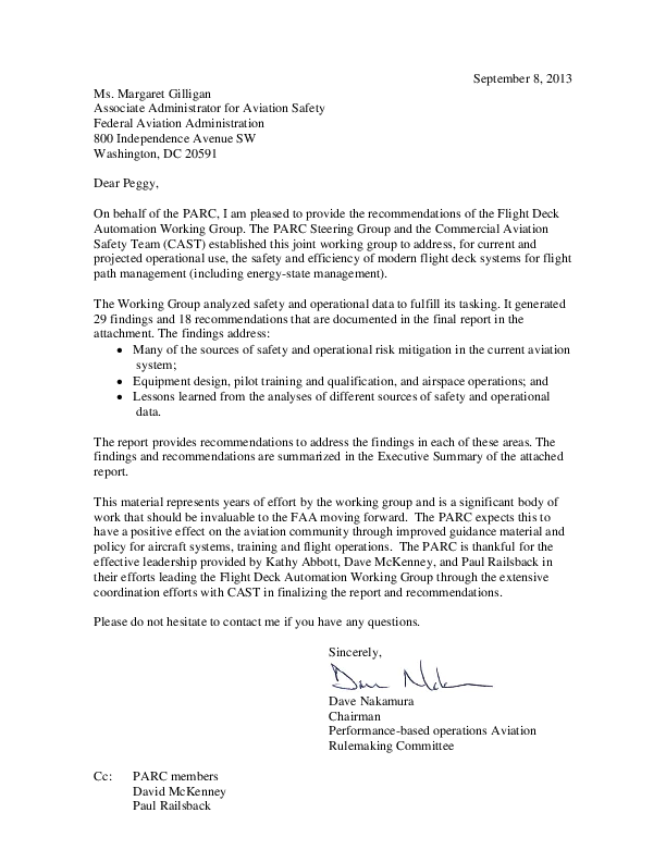 The Working Group analyzed safety and operational data to fulfill its tasking. It generated 29 findings and 18 recommendations that are documented in the final report in the attachment. The findings address: 1) Many of the sources of safety and operational risk mitigation in the current aviation system; 2) Equipment design, pilot training and qualification, and airspace operations; and 3) Lessons learned from the analyses of different sources of safety and operational data.