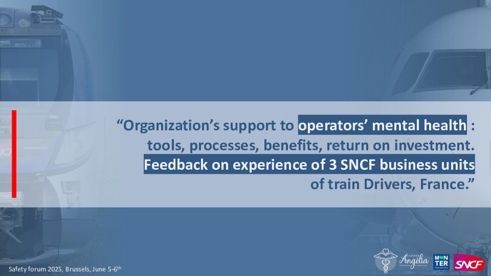 Organization's Support to Operators' Mental Health: Tools, Processes, Benefits, Return on Investment. Experience Feedback of 3 SNCF Business Units of Train Drivers, France