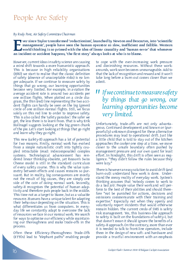 Ever since Taylor transformed ‘reductionism’, launched by Newton and Descartes, into ‘scientific management’, people have seen the human operator as slow, inefficient and fallible. Western world thinking is so primed with the idea of linear causality and ‘human error’ that whenever an incident or accident happens, ‘the first story’ always looks at who is to blame.