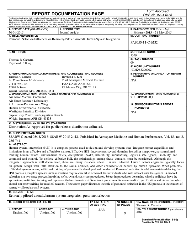 Personnel Selection Influences on Remotely-Piloted Aircraft Human-System Integration