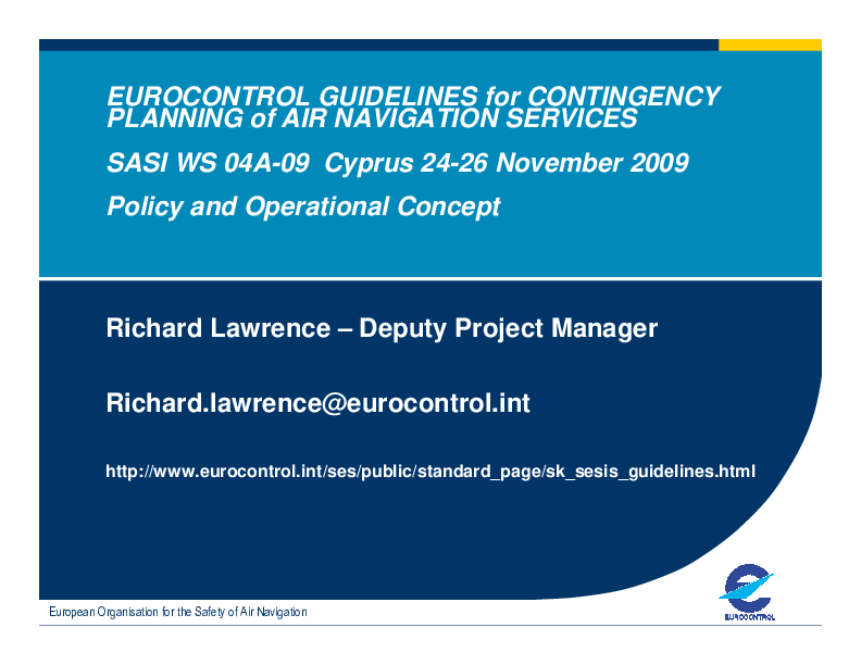 This presentation is focused on the operational concept of contingency planning, which includes reconciliation, elaboration, current arrangements.