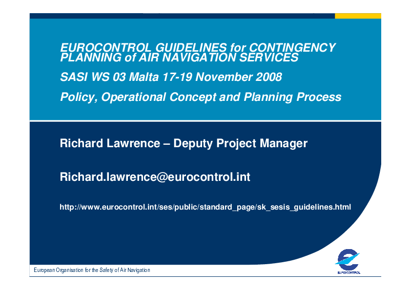 This document contains general considerations for Contingency Policy, and guidelines for creating an Operational Concept for Contingency ( from the requirements, planning, rationale and benefits to new environment) and informations about Generic Contingency Planning Process.