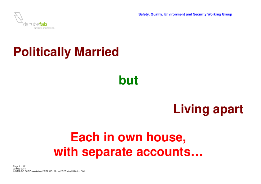 This presentation about the establishment of Danube FAB introduces the ROMATSA and BULATSA common safety management manual, which was the result of the exchange of the SMM between those ANSPs and it is also a safety bridging type document describing the interaction between ROMATSA and BULATSA SMSs within DANUBE FAB.