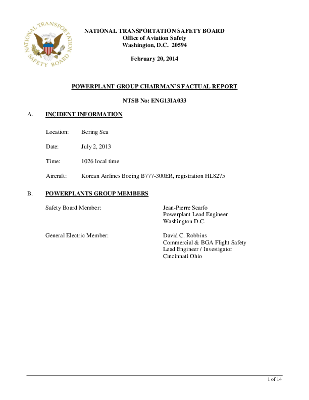 Powerplant Group Chairman Factual Report NTSB No: ENG13IA033, Korean Airlines Boeing B777-300ER