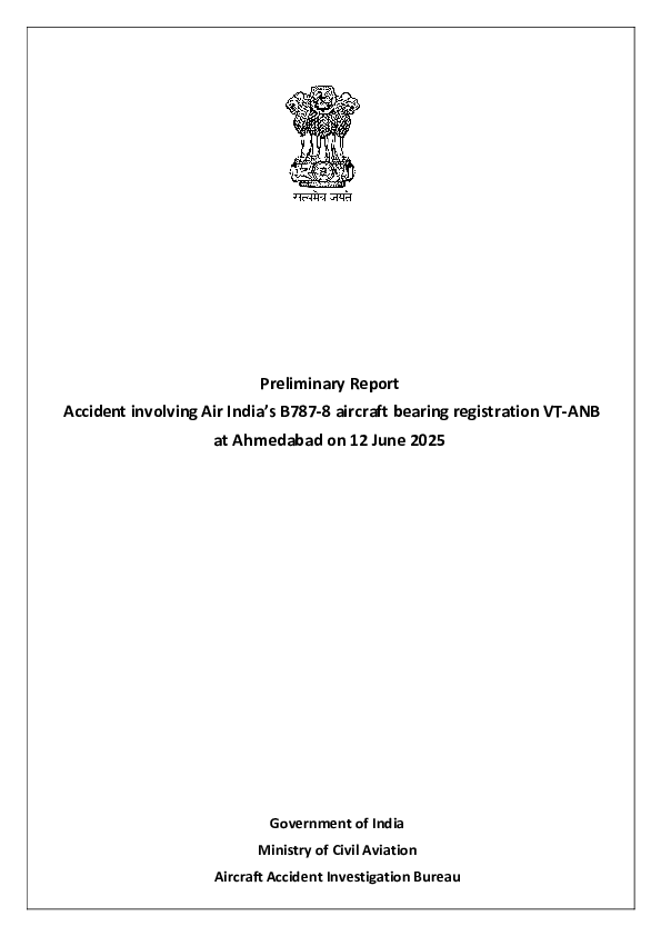 Preliminary Report, B788 (VT-ANB), vicinity Ahmedabad, India, 2025