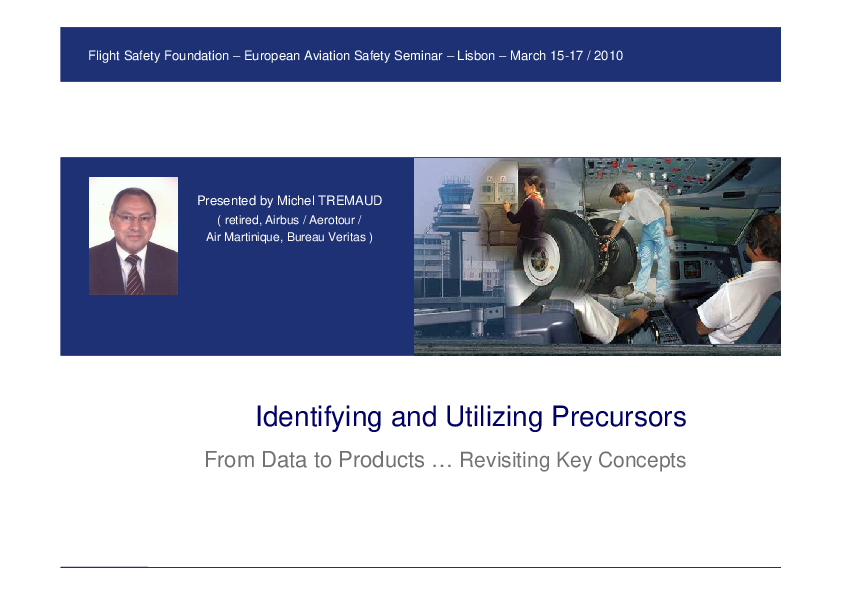 This presentation describes the role of identification and analysis of accident and serious incident precursors.