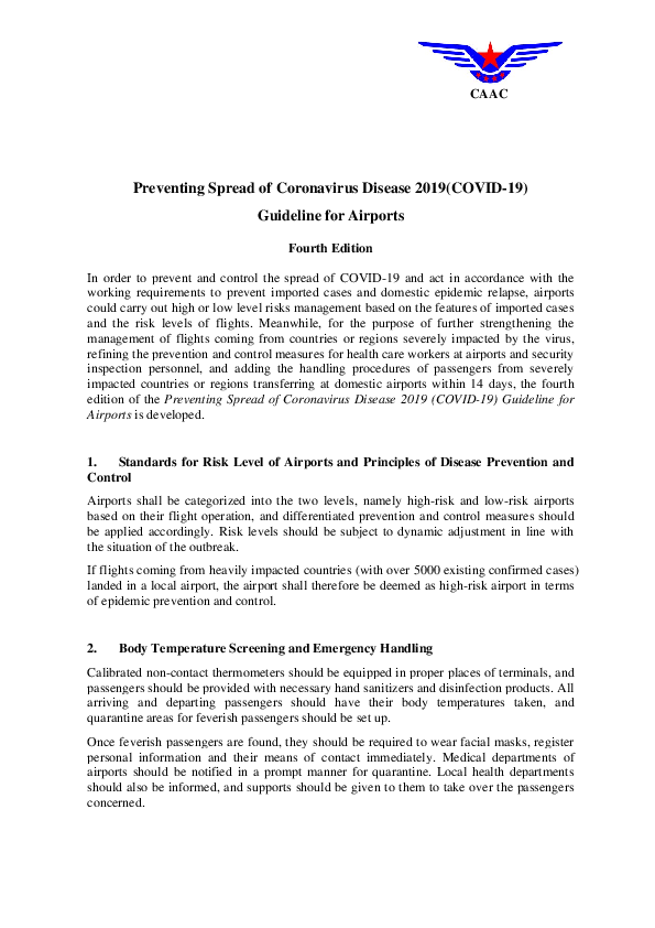 Preventing Spread of Coronavirus Disease 2019 (COVID-19), Guideline for Airports, Fourth Edition