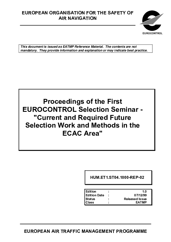 Proceedings of the first EUROCONTROL Selection Seminar - Current and Required Future Selection Work