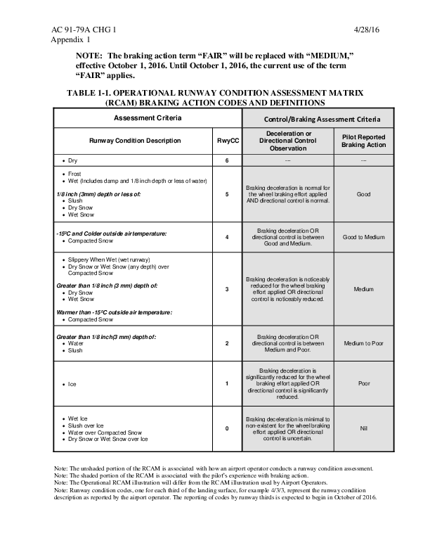 RCAM Braking Action Codes and Definitions - TALPA
