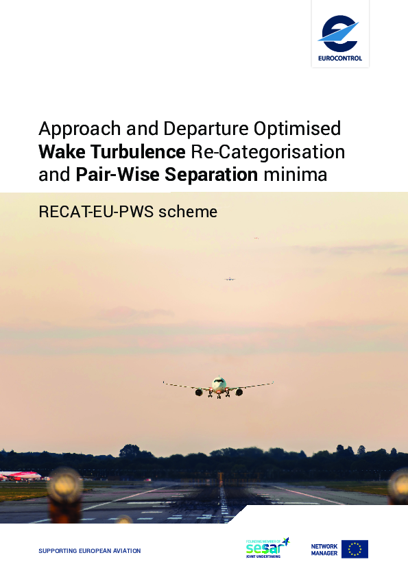 This document presents the European Optimised Wake Turbulence Categorisation and distance-based static Pair-Wise Separation (S-PWS) Minima for Approach and Departure, also named ‘RECAT-EU-PWS’ scheme.