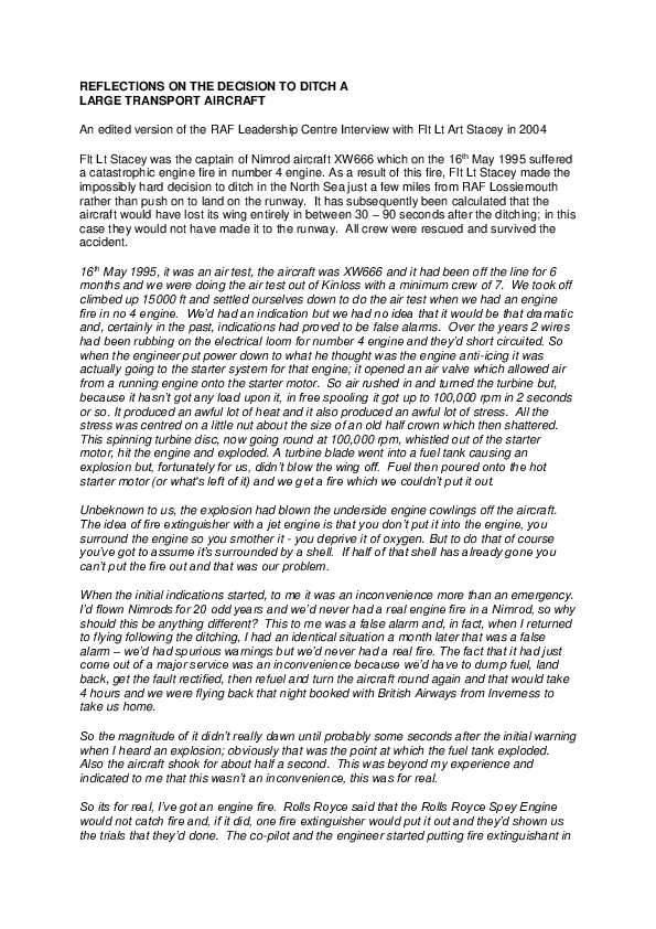 Reflections on the Decision to Ditch a Large Transport Aircraft