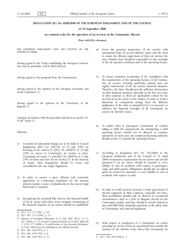 Regulation (EC) No 1008/2008 of the European Parliament and of the Council of 24 September 2008