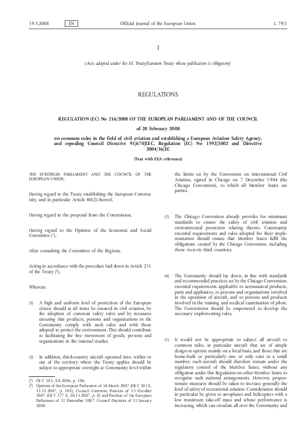 Regulation (EC) No 216/2008 of the European Parliament and of the Council of 20 February 2008