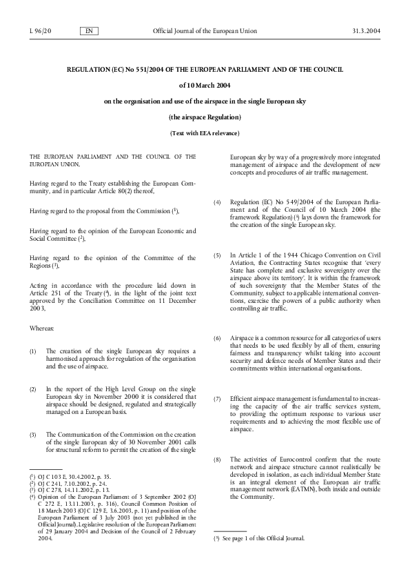 Regulation (EC) No 551/2004 of the European Parliament and of the Council of 10 March 2004 on the or