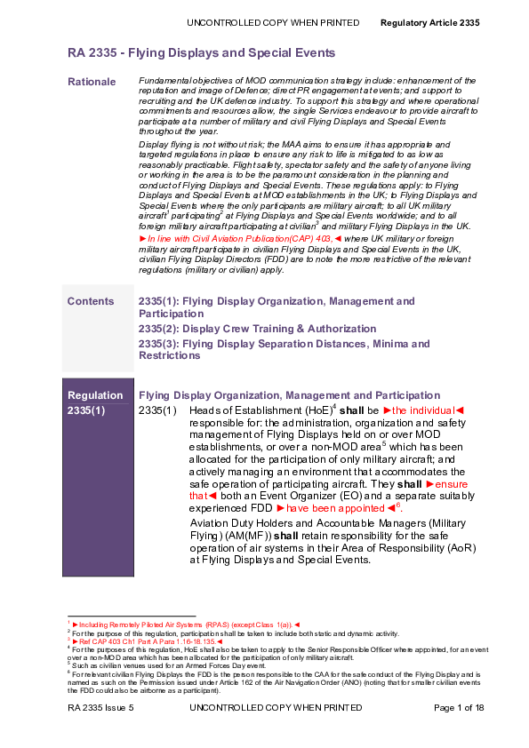 Regulations for UK military flying displays published by MAA revised as Issue 5 in 2015