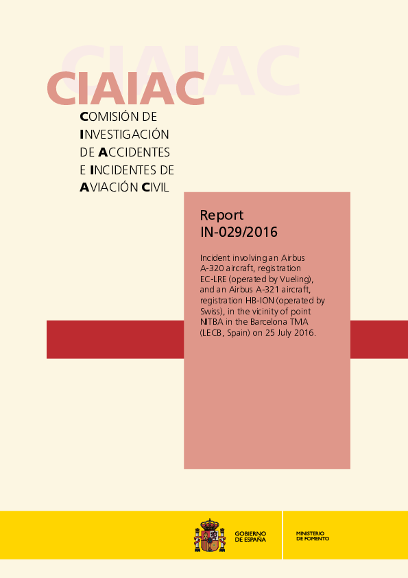 Report IN-029/2016: A320 / A321 LOS vicinity Barcelona Spain, 25 July 2016