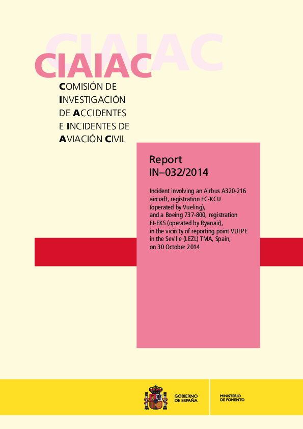Report IN-032/2014: AIRPROX A320 (EC-KCU) & B738 (EI-EKS), near Cordoba Spain, 30 Oct 2014