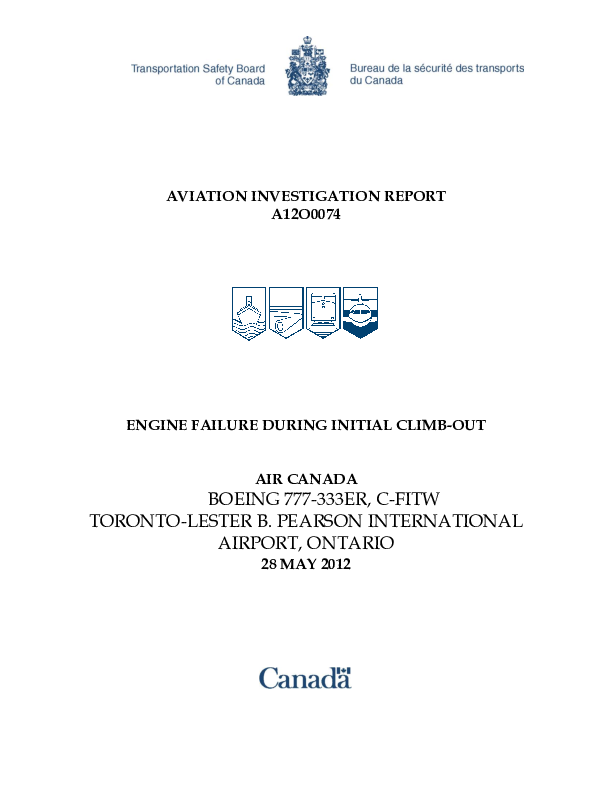 Report: A12O0074, B773 engine failure during take-off, Toronto Canada, 28 May 2012