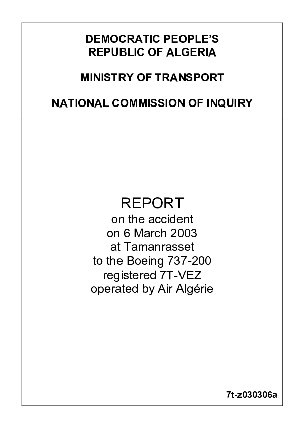 Report on the accident on 6 March 2003 at Tamanrasset to the Air Algerie Boeing 737-200