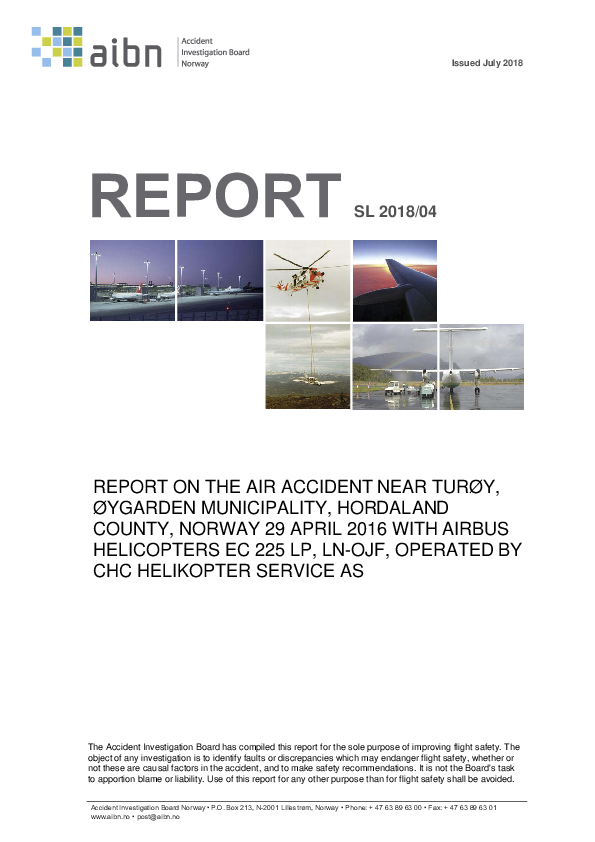 Report on the Air Accident near Turoy, Oygarden Municipality, Hordland County, Norway 29 April 2016