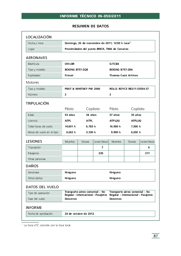 Report IN50/2011 (in Spanish), Loss of separation between two B752, north of Tenerife Spain, 20 Nov