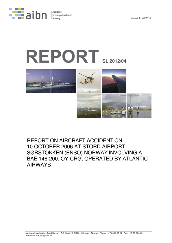 Report SL 2012/04, B462 runway excursion, Stord Norway, 10 Oct 2006