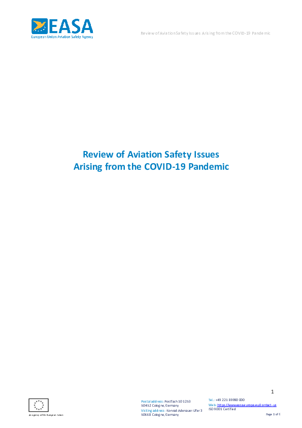 Review of Aviation Safety Issues Arising from the COVID-19 Pandemic