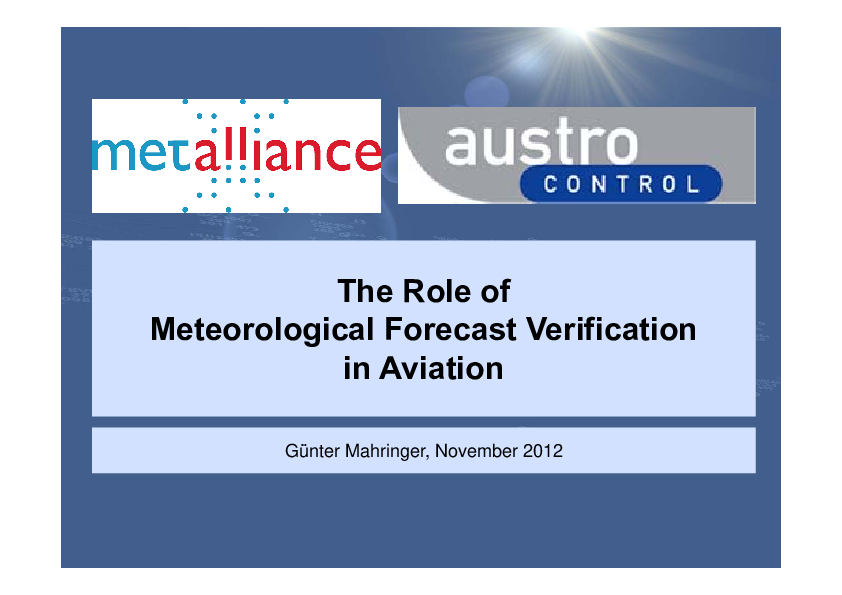The role of meteorological forecast verification in aviation - a presentation by Günter Mahringer