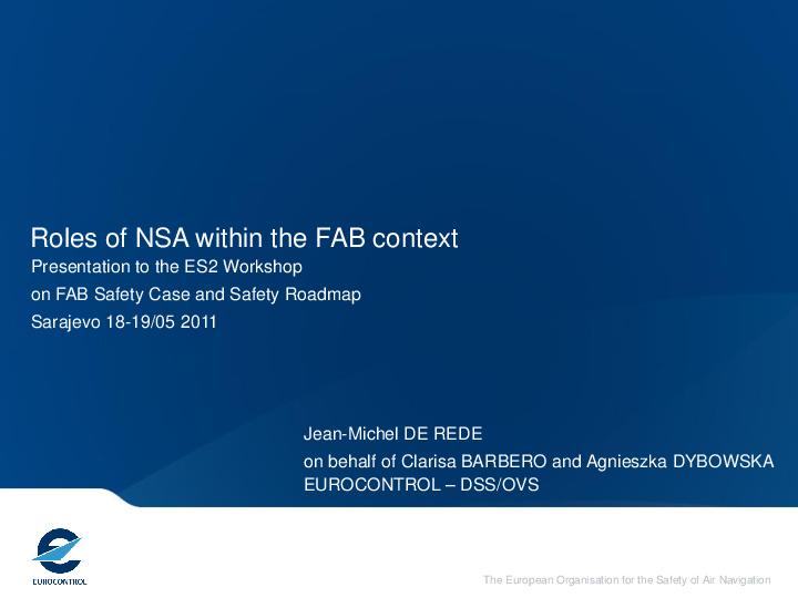 This presentation is about the interpretation of EC 176/2011 Regulation on FAB information and the agreements between the state level and NSA level, inluding some extracts from NSA level agreements.