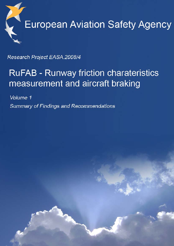 Runway Friction Characteristics Measurement and Aircraft Braking (RuFAB) study, sponsored by EASA to investigate and harmonize: (a) Terminologies for runway surface conditions, related to functional and operational friction characteristics; (b) Functional characteristics as they relate to friction measurement reporting; and (c) Operational characteristics as they relate to runway surface condition assessment and reporting, friction measurement, and aircraft braking.