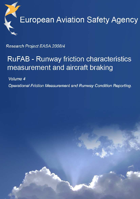 Runway Friction Characteristics Measurement and Aircraft Braking (RuFAB) study, sponsored by EASA to investigate and harmonize: (a) Terminologies for runway surface conditions, related to functional and operational friction characteristics; (b) Functional characteristics as they relate to friction measurement reporting; and (c) Operational characteristics as they relate to runway surface condition assessment and reporting, friction measurement, and aircraft braking.