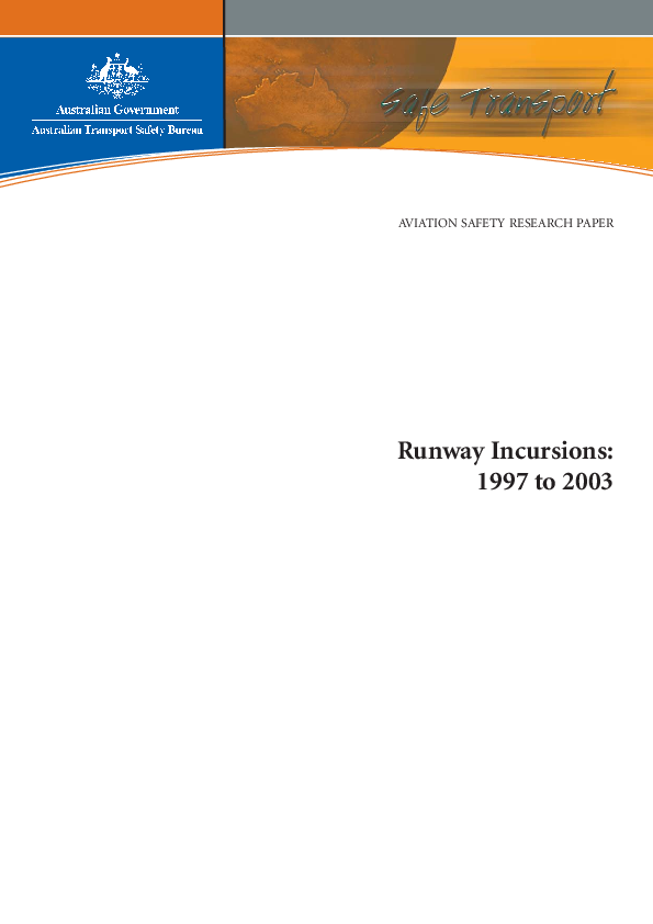 Runway Incursions: 1997 to 2003, ATSB Research Report, June 2004