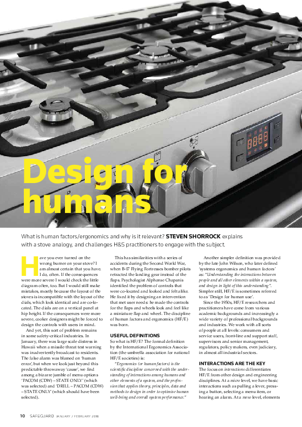 What is human factors/ergonomics and why is it relevant? STEVEN SHORROCK explains with a stove analogy, and challenges H&S practitioners to engage with the subject, in this article of Safeguard January/February 2018 ed.
