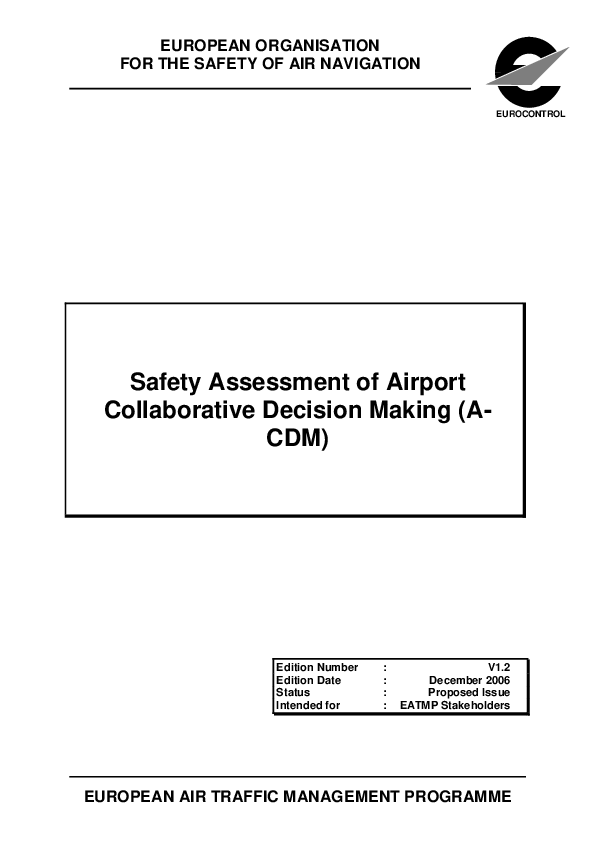 This document presents a safety assessment of the Airport CDM (A-CDM) Project. The relevant ACDM milestones, flight phases and data flows have been systematically analysed. The safety impacts of A-CDM have been identified and documented. Where concerns or new hazards have been found, appropriate risk mitigation has been proposed.