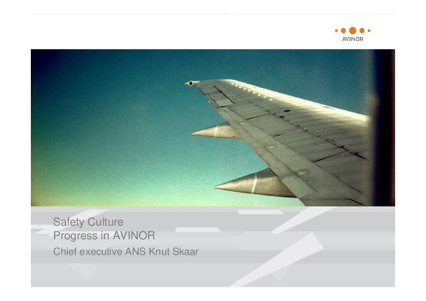 This presentation describes AVINOR's reasons for focusing on safety culture, advancing safety culture in this organisation-approaching safety cuture survey, insights from the survey process