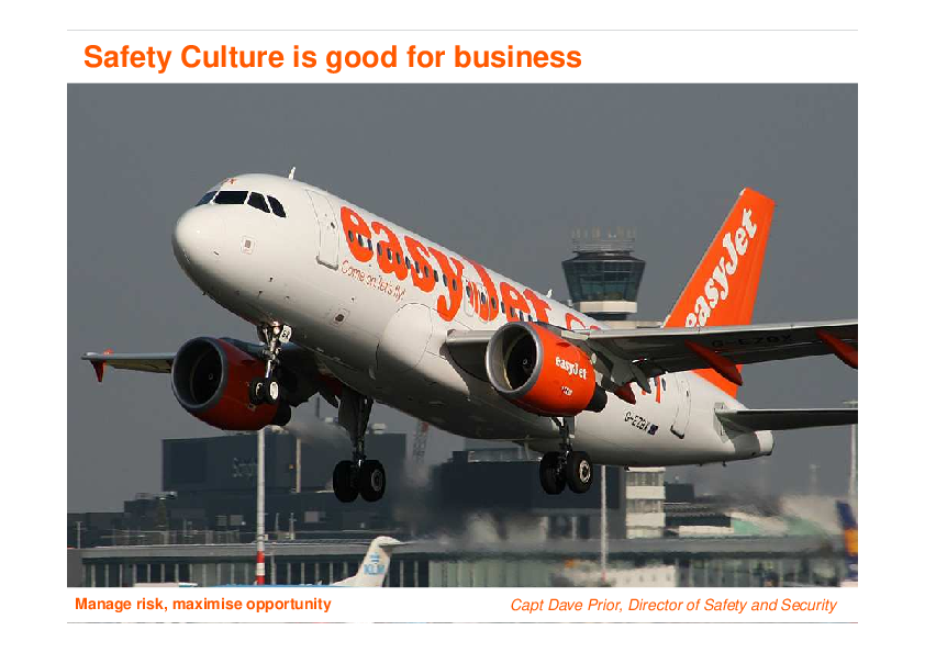 This presentation sums up why easyJet embraces safety culture ( managing risk by making safety number one priority) and how an efficient safety system together with a safety culture can help to drive shareholder value.