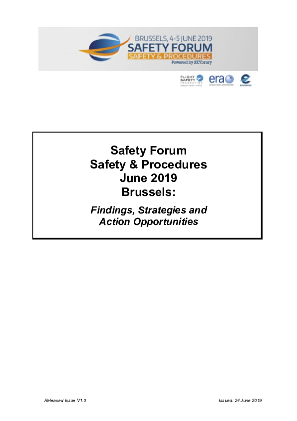 Safety Forum Safety & Procedures June 2019 Brussels: Findings, Strategies and Action Opportunities