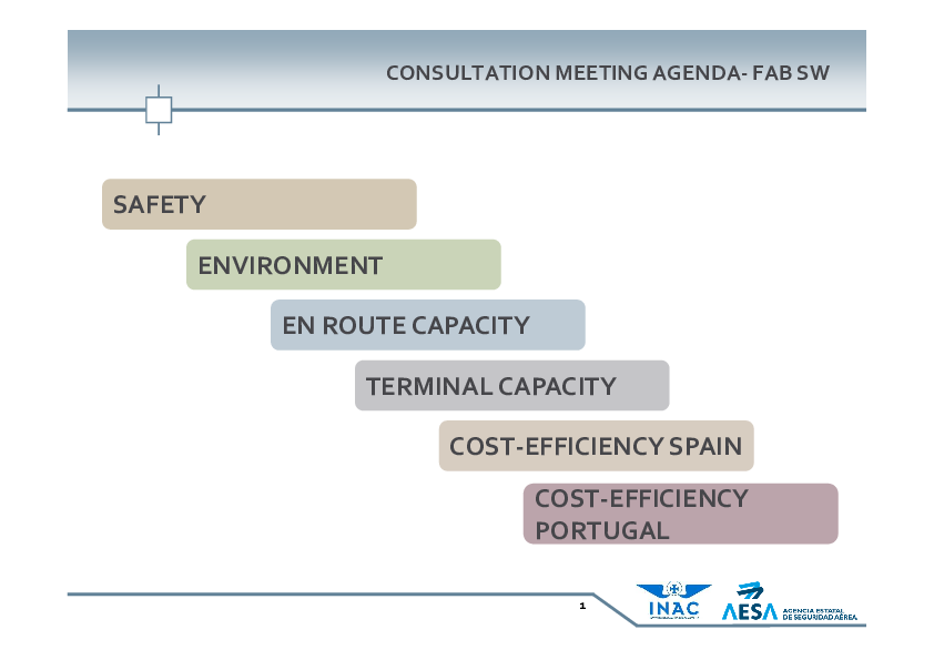 This presentation focuses on the level of efficacy of safety management at NSA and ANSPs and the application of RAT metodology and Just Culture principles especially in Spain and Portugal for a potential improvement towards the establishment of a common SW FAB.