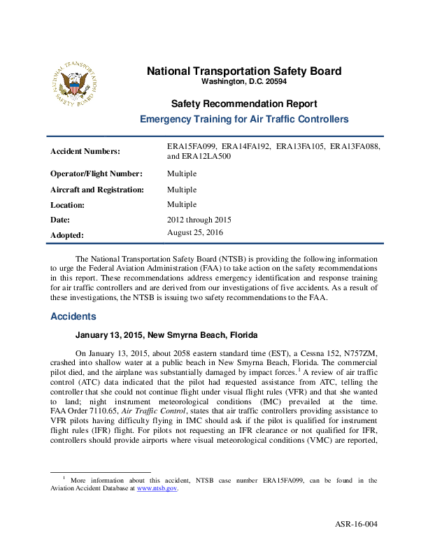 Safety Recommendation Report - Emergency Training for Air Traffic Controllers