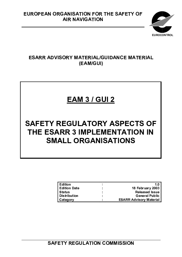 This document only proposes some harmonised guidelines to provide ATM safety regulators with generic guidance for dealing with the national application of ESARR 3 within the small organisation concept.