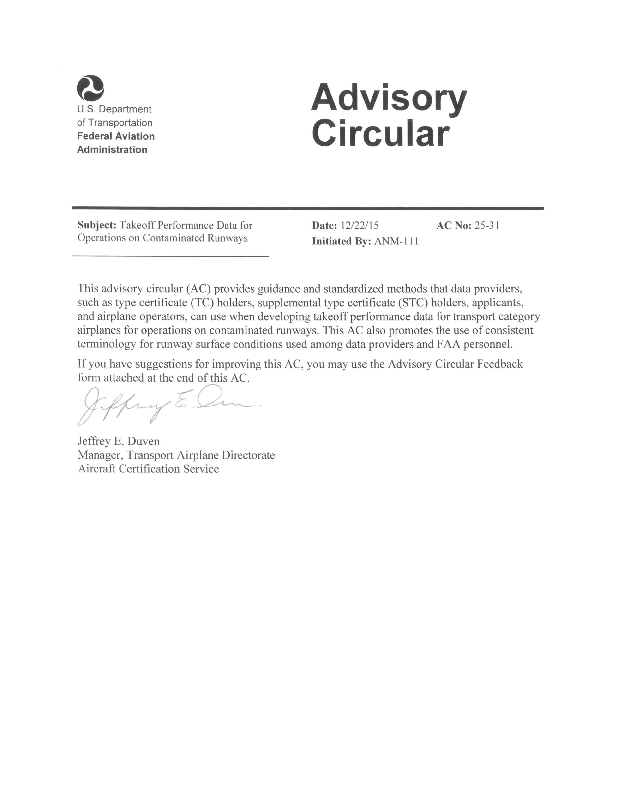 AC 25-31, Takeoff Performance Data for Operations on Contaminated Runways