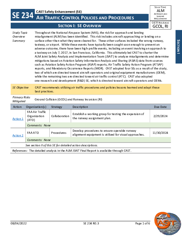 SE234 R0.3: Approach and Landing Misalignment - ATC Policies and Procedures