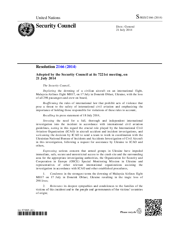 Security Council Resolution 2166 (2014)