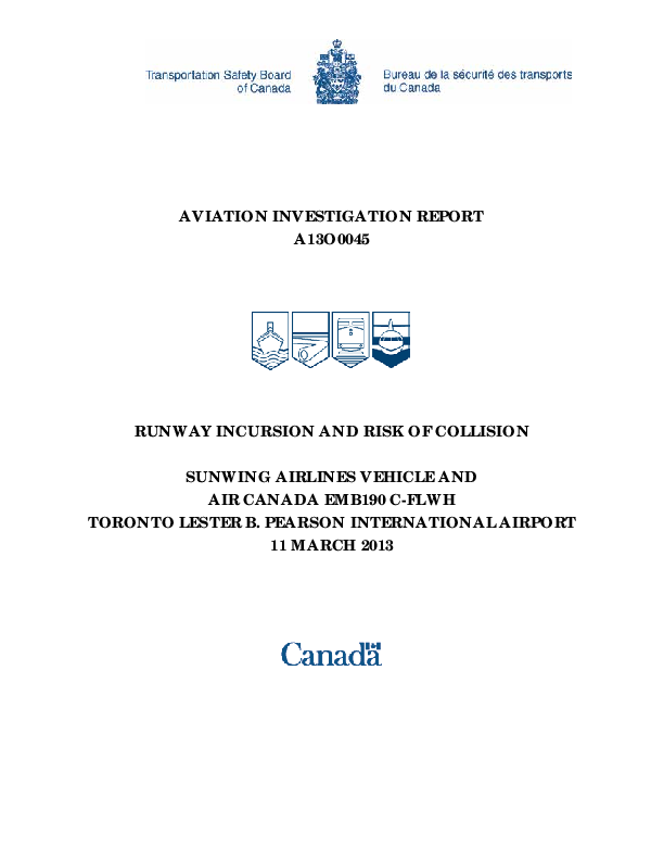 Serious Incident report A13O0045: Runway incursion, Toronto, Canada, 11 March 2013