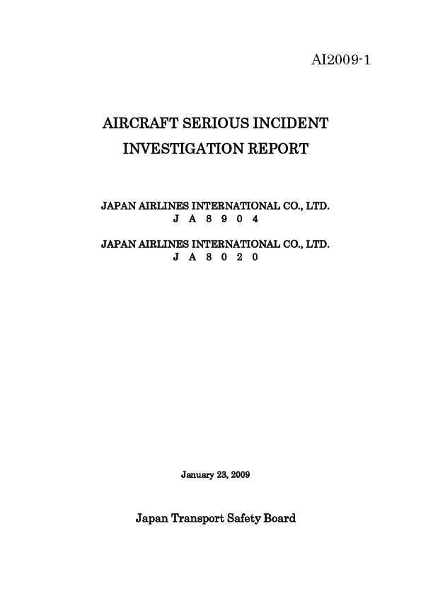 Serious Incident Report AI2009-1 Runway incursion, B744 and MD 90, New Chitose Airport, Japan 2008
