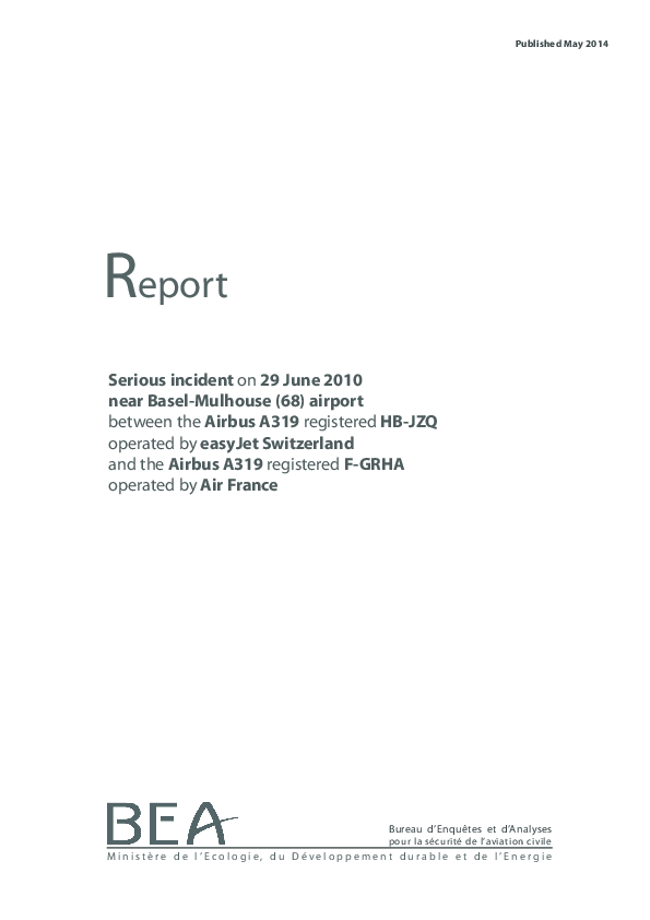 Serious Incident report: Loss of separation A319/A319, Basle-Mulhouse, 29 June 2010