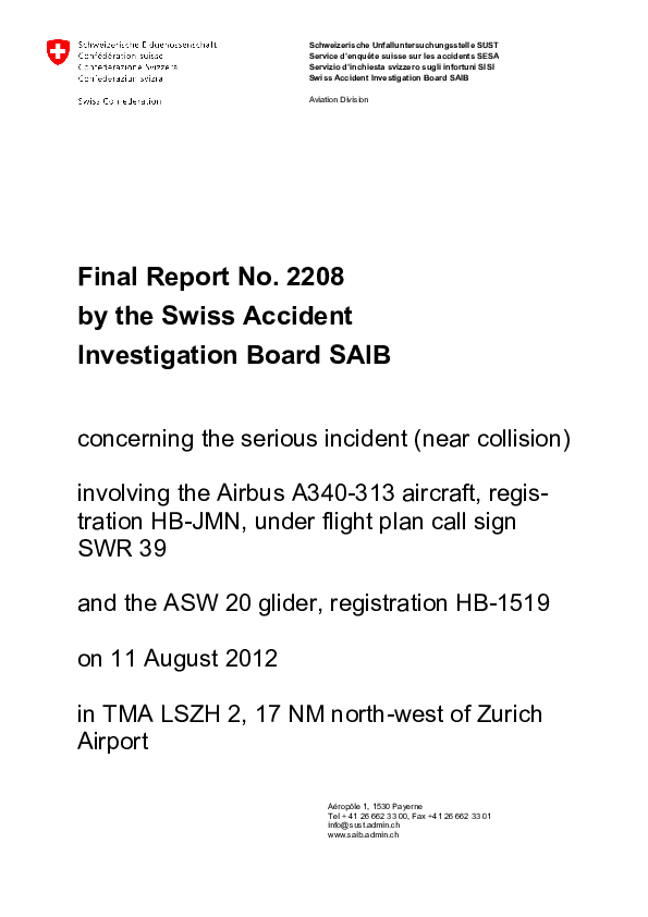 Serious Incident Report: Loss of separation, A343 and glider, orth of Waldshut-Tiengen southwest Ger