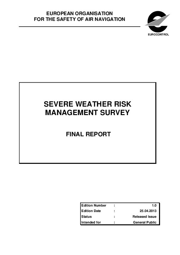 In 2011, on stakeholder request a Network Severe Weather procedure project was established by the Network Manager in EUROCONTROL in order to improve the support provided to ATC centres in managing the risk to aircraft operations caused by severe convective weather. The development of an effective severe weather risk management and coordination procedure should take due account of local ATC centresâ capabilities, infrastructure, procedures and practices for severe weather impact management and how these elements could support the network severe weather procedure. Therefore a dedicated severe weather risk management survey was carried out in 2012. The survey scope covered the entire chain of severe weather impact and risk management starting with weather forecasting by meteorological offices, addressing pre-tactical management by FMPs and the Network Manager and concluding with the deployment of tactical measures by ATC and pilots.