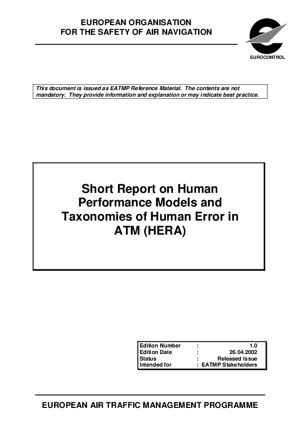 Short Report on Human Performance Models and Taxonomies of Human Error in ATM (HERA)